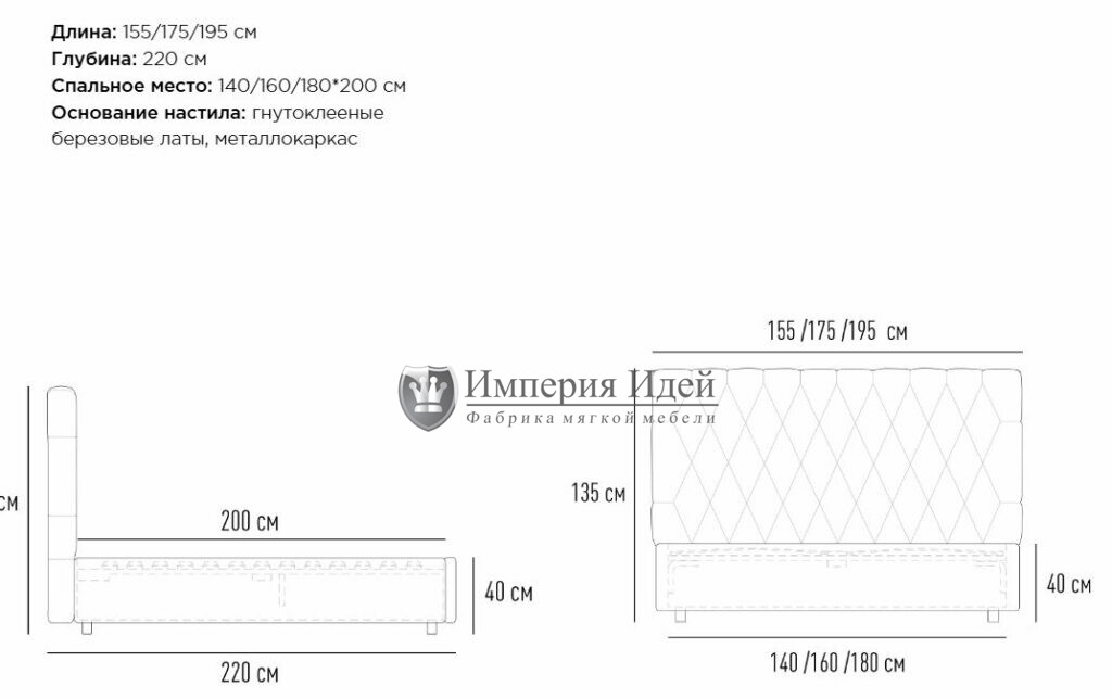 Размеры: 155х220 175х220 195х220